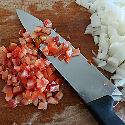 3. Yellow onion - 2 medium size and finely chopped (if you have a chopper then don't hesitate to use it).